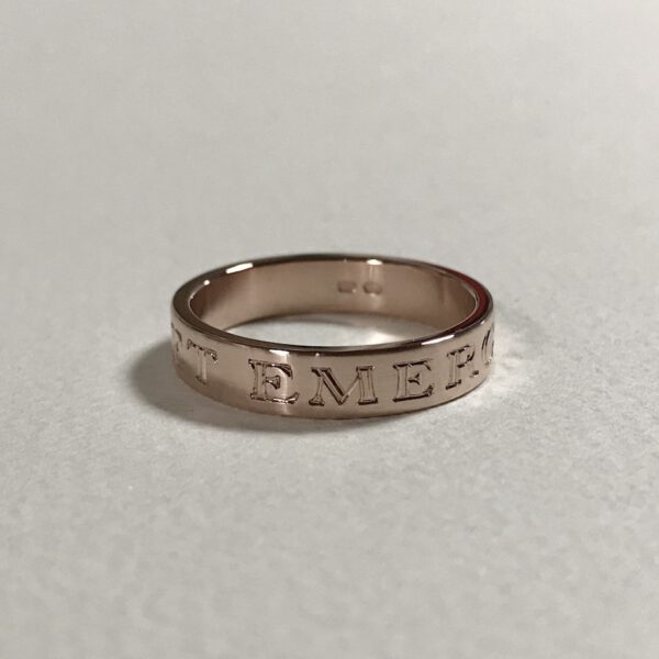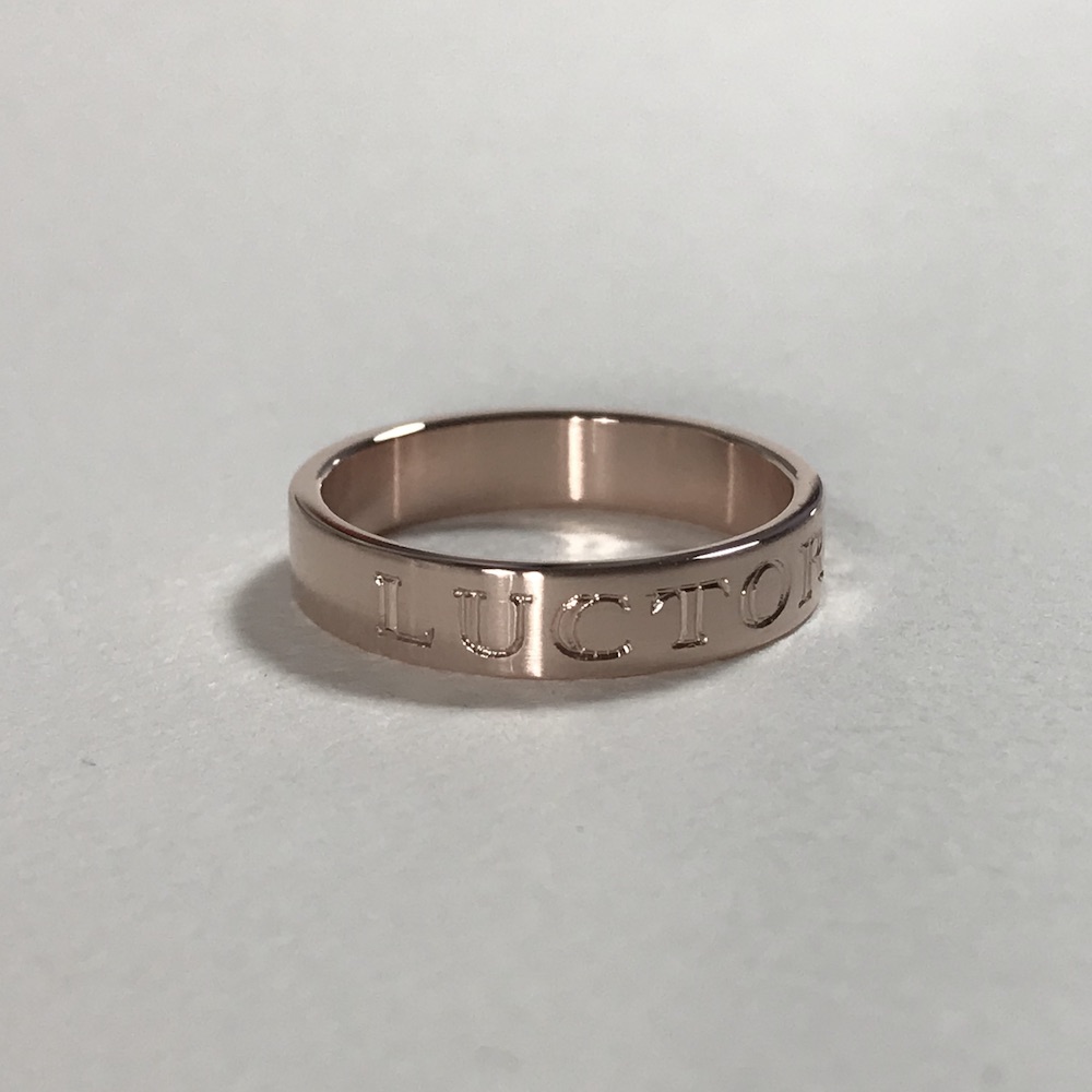 In deze ring staat de tekst “Luctor et Emergo” (ik worstel en kom boven). Dit is de wapenspreuk van Zeeland, maar daarnaast natuurlijk ook een tekst die privé van betekenis kan zijn. De tekst heb ik met de hand gegraveerd.